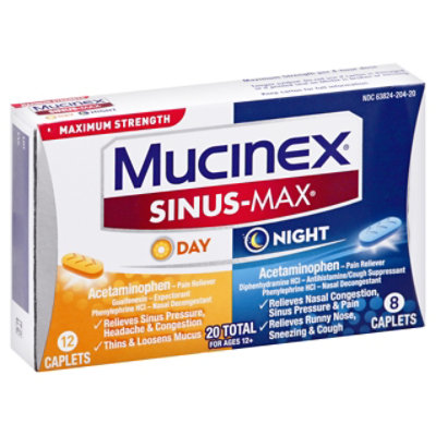 Mucinex Sinus Max Day Night Medicine Maximum Strenght Caplets 20 Count Vons